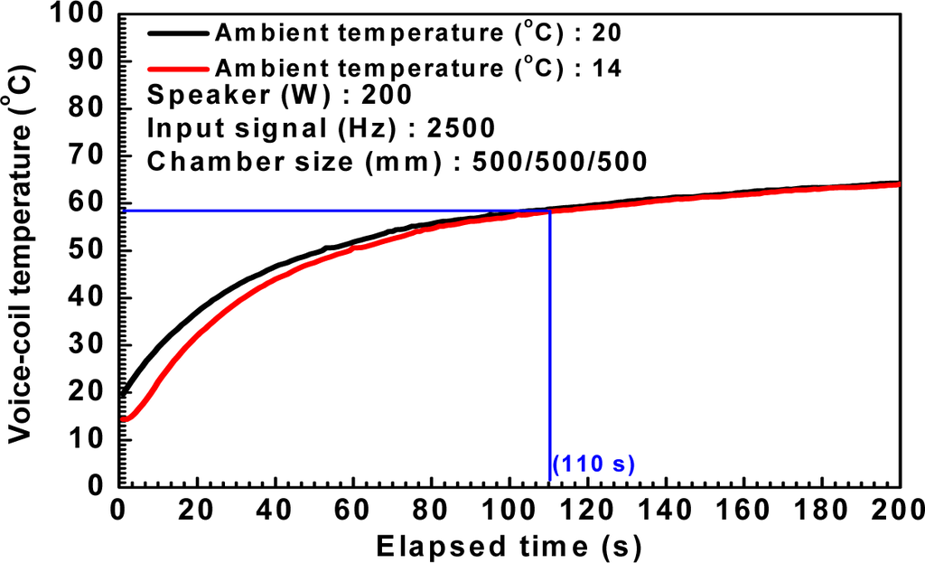 - Koh, S.J.; Lee, K.J.; Kang, J.H.; Oh, G.H.; Sung, K.H.; Kim, C.J. Development of a temperature prediction tool for voice-coils in loudspeakers using CFD analysis. Proceedings of the Korean Society of Mechanical Engineers, Hang-Won, Korea, 23 April 2008; pp. 41–44.