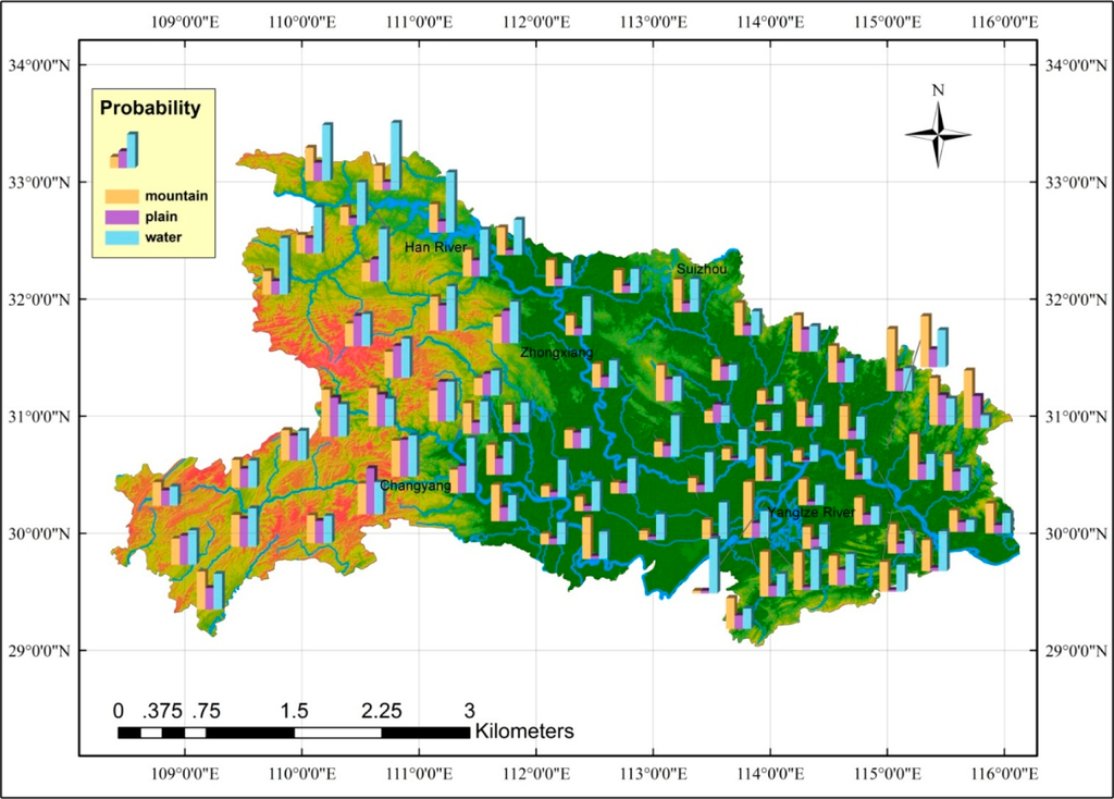Vector data of the administrative districts of Hubei Province acquired from the National Fundamental Geographic Information System (NFGIS) were used for clipping features and the base map. This map of the study area is crucial for the visualisation process.