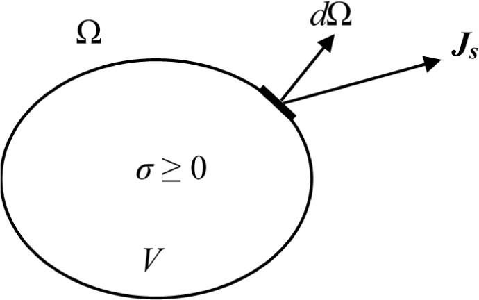 where s is the entropy per unit mass, ρ is the density, Js is the total entropy flow per unit area and unit time, dΩ is the element of surface area (see Figure 3), and σ denotes the entropy generation per unit volume per unit time. The second law of thermodynamics requires