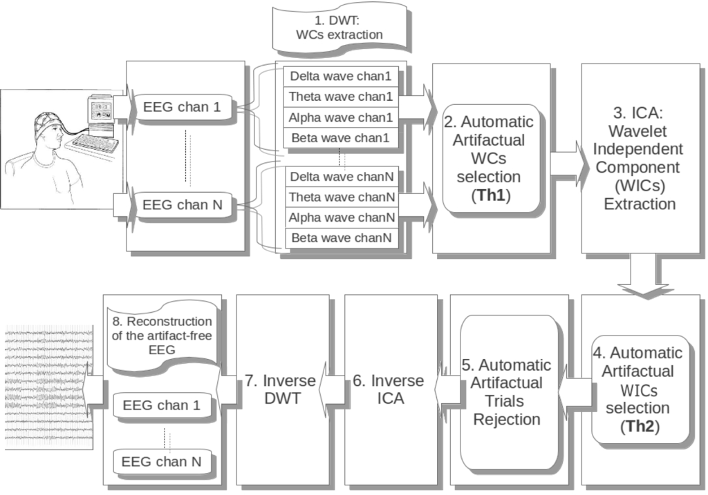 In order to remove artifacts from the EEG automatically, a technique, automatic wavelet-independent component analysis (AWICA), was recently proposed by the authors ([22–27]), which performs automatic artifact rejection, while not discarding any epoch of the EEG recording.