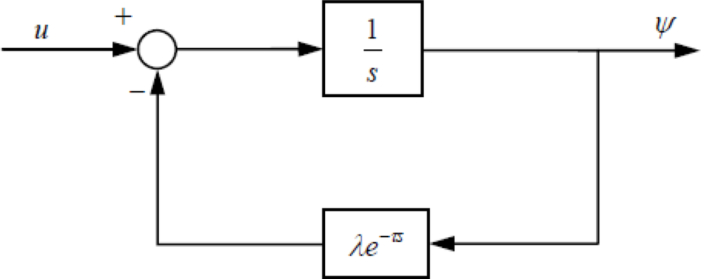 Since the transfer function e−τs/s has infinite zeros in the right half-plane (RHP), which can be known from Pades’ approximation of e−τs by a ratio of polynomials [43], the Root Locus regarding to Equation (34) will go across the imaginary axis into the RHP as the positive gain λ is large enough. Therefore, there are always poles of the 2D transfer function in Equation (33) being in the RHP. That is, the perturbation dynamics in Equation (32) is unstable, as proved in the preceding paragraph.