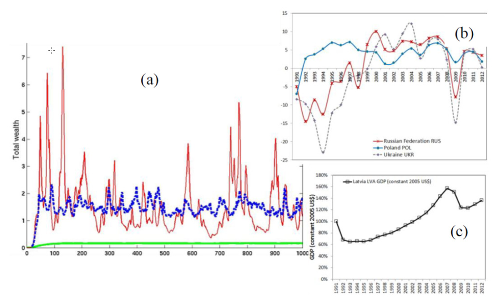 - Yaari, G.; Nowak, A.; Rakocy, K.; Solomon, S. Microscopic study reveals the singular origins of growth. Eur. Phys. J. B 2008, 62, 505–513. [Google Scholar]