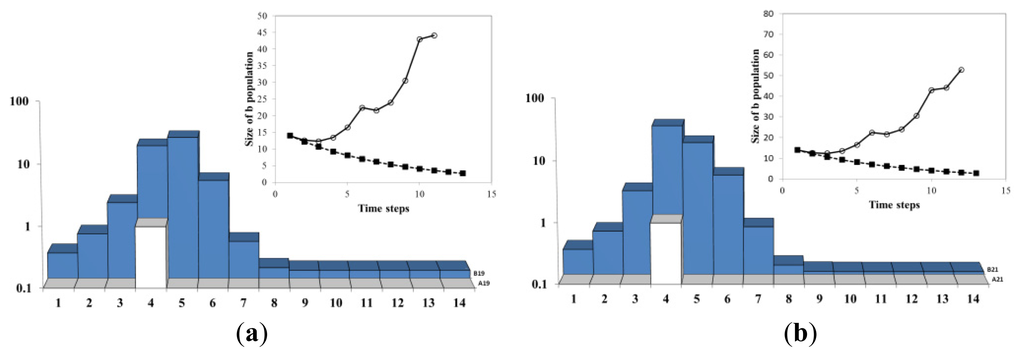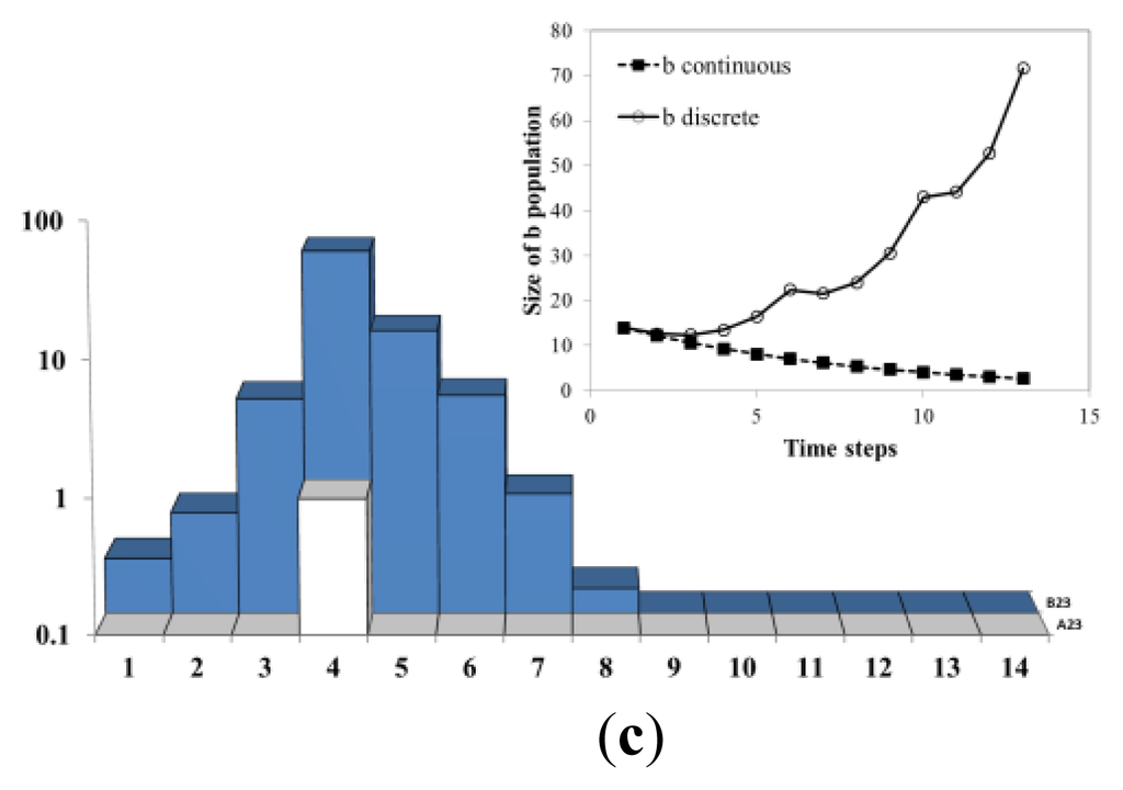 - Louzoun, Y.; Solomon, S.; Atlan, H.; Cohen, I.R. Proliferation and competition in discrete biological systems. Bull. Math. Boil 2003, 65, 375–396. [Google Scholar]