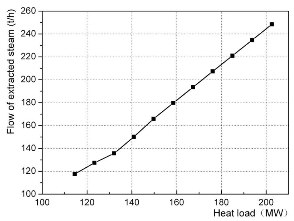 Furthermore, the flow and pressure of extracted steam can be obtained by a thermal balance calculation of the HHG [20]:
