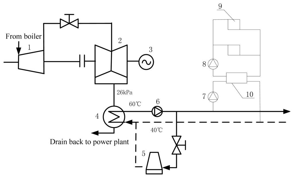 - Yang, J.C. The Reforming Design and Operating Analysis of Provision-Heating in Low Vacuum of the Turbine. Master Thesis, Liaoning Technical University, Fuxin, China, 1 May 2006. (In Chinese). [Google Scholar]