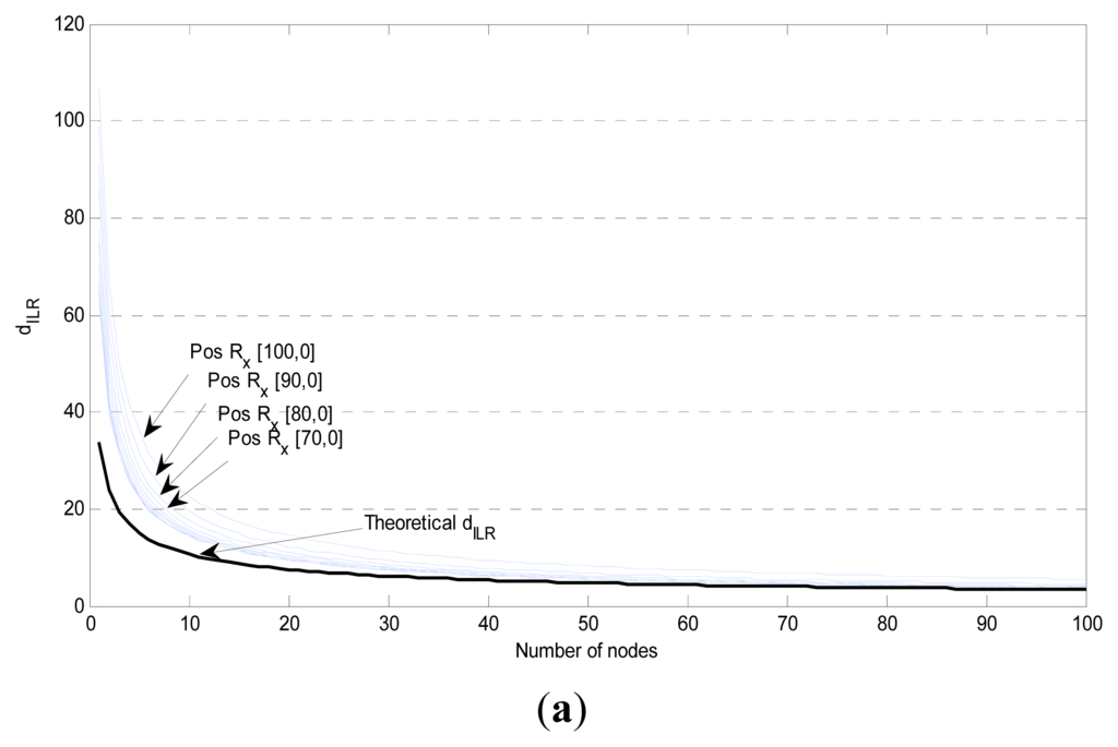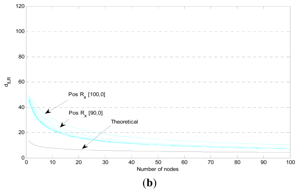 In the final set of simulations the procedure described at the beginning of this section is employed (we measure the value of the dILR for each placement of the transmitting nodes and then calculate its mean value).