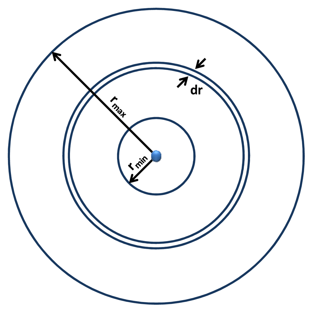 where for rmax ≫ rmin we have , that is the interference has a strong dependence on rmax (and consequently on the transmitter density ) and a much weaker (logarithmic) dependence on rmin (the size of the exclusion region).