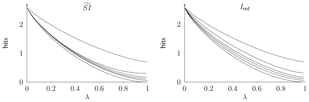 The problem of separating the contributions of shared information and synergistic information to the co-information is probably as old as the definition of co-information itself. Nevertheless, the co-information has been widely used as a measure of synergy in the neurosciences; see, for example, [,] and the references therein. The first general attempt to construct a consistent information decomposition into terms corresponding to different combinations of shared and synergistic information is due to Williams and Beer []. See also the references in [] for other approaches to study multivariate information. While the general approach of [] is intriguing, the proposed measure of shared information Imin suffers from serious flaws, which prompted a series of other papers trying to improve these results [–].