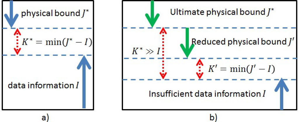 The first quantity, I, measures the amount of information as a finite scalar implied by the data with some suitable measure [2]. It is formally defined as the trace of the Fisher information matrix [3]. In addition to I, the second quantity, the information bound J, is an invariant that characterizes the information that is intrinsic to the physical phenomenon [2]. During the measurement procedure, there may be some loss of information, which entails I = κJ, where κ ≤ 1 is called the efficiency coefficient of the EPI process in transferring the Fisher information from the phenomenon (specified by J) to the output (specified by I). For closed physical systems, in particular, any solution for I attains some fraction of J between 1/2 (for classical physics) and one (for quantum physics) [4].