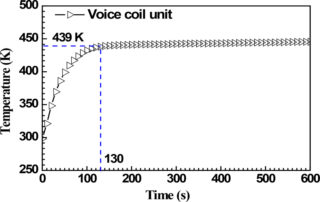 Temperatures computed in this study are theoretically obtained by the numerical model applying the simple thermal equivalent heat conduction methods, but practical values would limit the temperatures to lower values. In addition, for improving the reality of the simulation model, we will consider and develop the thermal modeling of the woofer considering the transient phenomena reflecting the frequency and input power effects in the next article.
