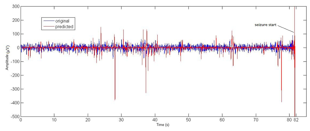 Preseizure stage and seizure start. Original data (0–81 s) and MEP prediction (0–82 s).