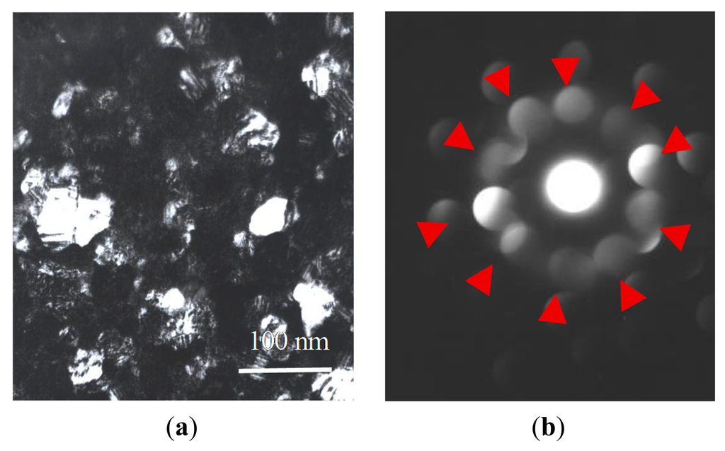 - Tomut, M.; Prima, F.; Huenen, G.; Vaughan, G.; Yavari, A.R.; Svec, P.; Stone, I.C.; Cantor, B. Microstructure evolution of high strength AlFeVTi nanoquasicrystalline alloys at elevated temperature. Mater. Sci. Eng. A 2004, 375–377, 1239–1245. [Google Scholar]