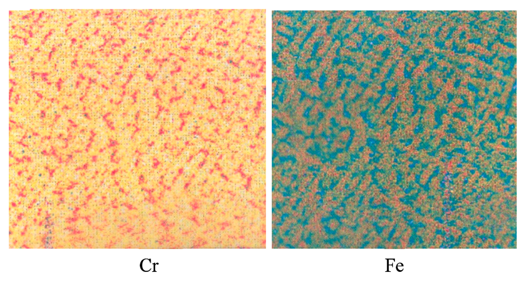 - Pradeep, K.G.; Wanderka, N.; Choi, P.; Banhart, J.; Murty, B.S.; Raabe, D. Atomic scale characterization of nanocrystalline AlCrCuFeNiZn high entropy alloy using atom probe tomography. Acta Mater 2013, 61, 4696–4706. [Google Scholar]
