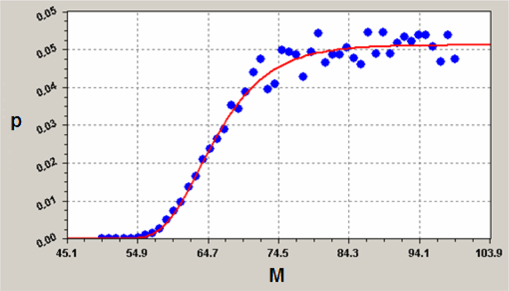 In Figure 12, we show the graph of the size of sample M vs. the experimental probability p that p ≤ P and oi ≤ omin for χbest (from the Monte Carlo experiment).