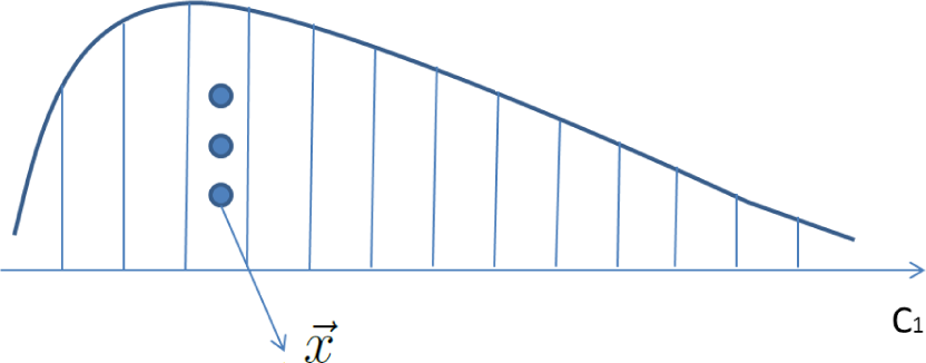 , which belongs to cluster C1. We divide the probability space of cluster C1 into a fixed number of quantiles (see Figure 5). The conditional proportion of