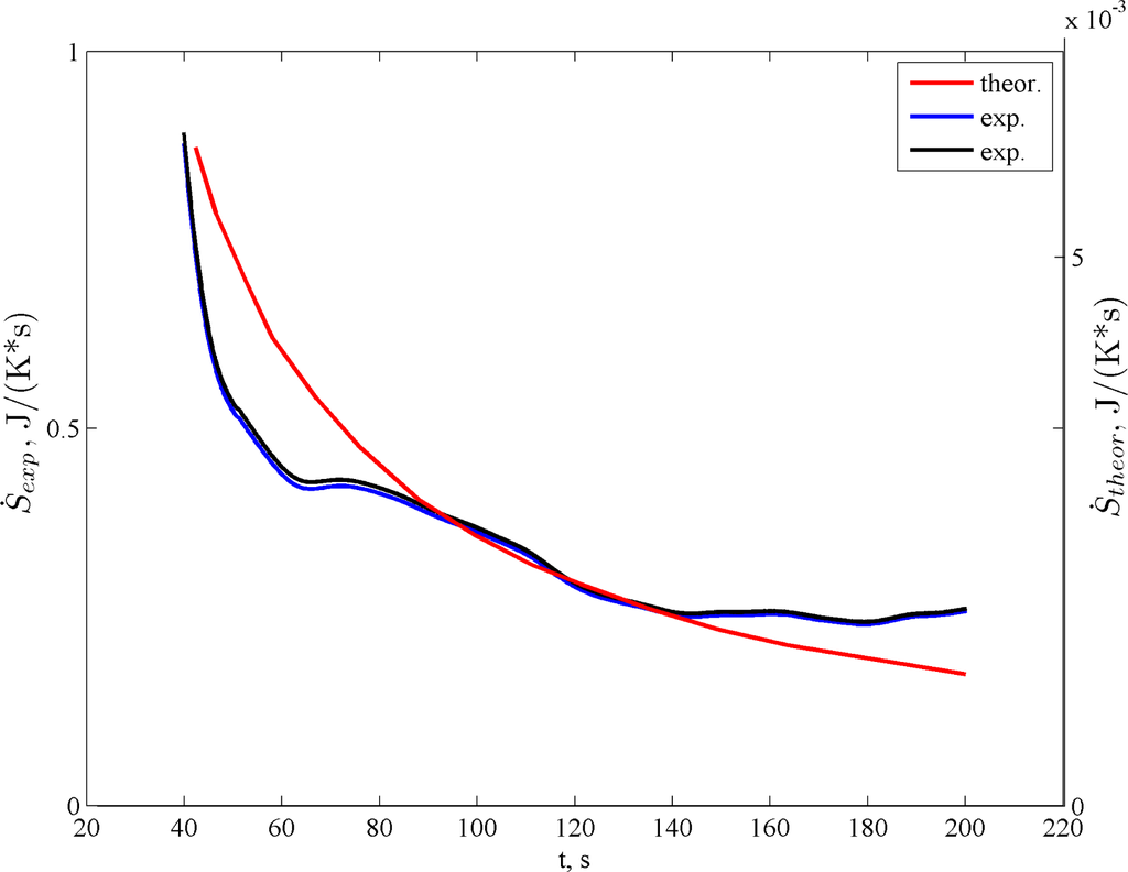 (Figure 2, red line). The shape of this curve agrees with the experimental curve for the entropy production (Figure 2, blue and black lines). However, we can only use such theoretical approach for the qualitative analysis up to Γp.