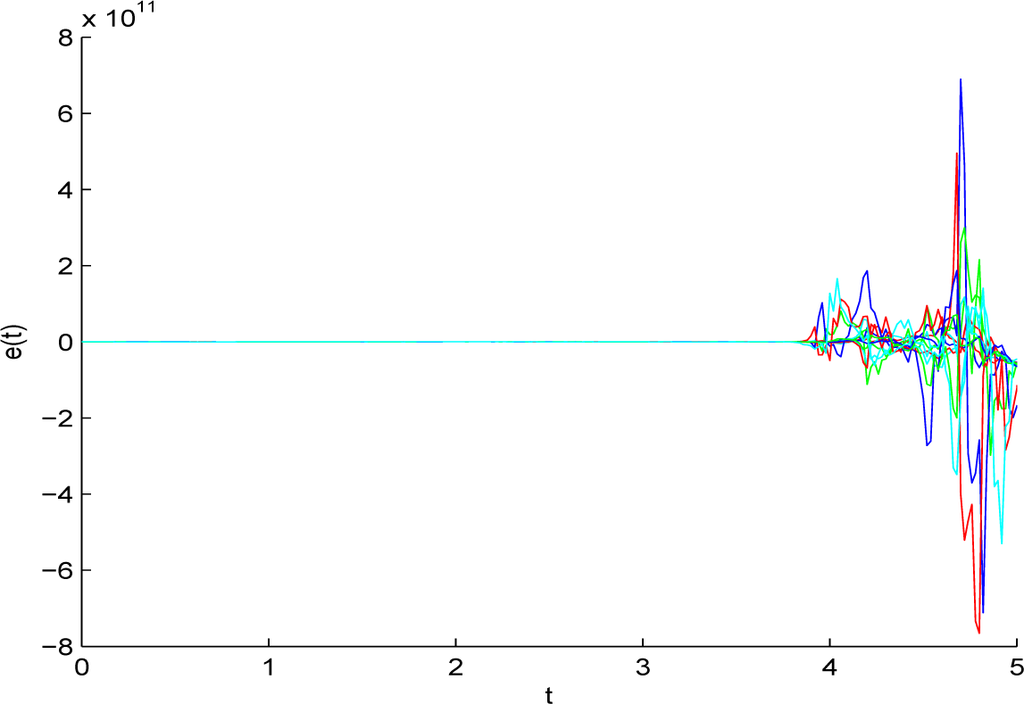 In order to show the original behavior of complex networks (22), the trajectories of the error signals without the controller are depicted in Figure 2.