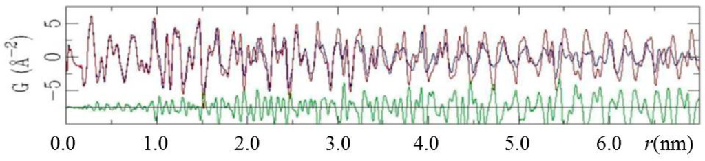 - Billinge, S.J.L. Nanoscale structural order from the atomic pair distribution function (PDF): There’s plenty of room in the middle. J. Solid State Chem 2008, 181, 1695–1700. [Google Scholar]