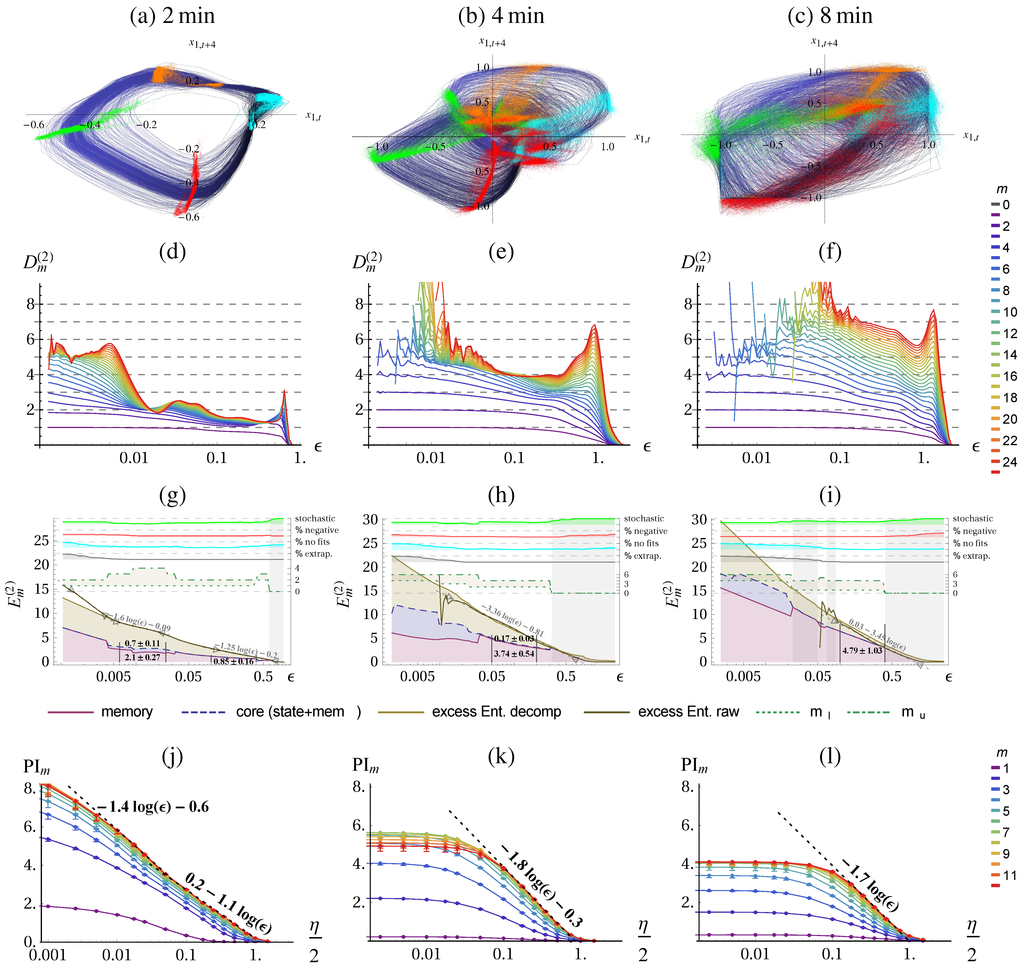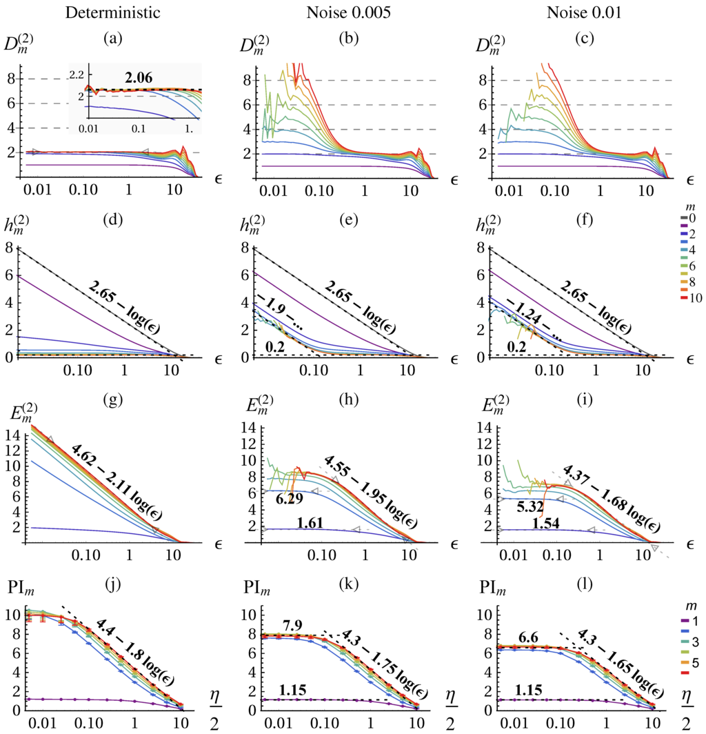 with denoting the length scale where the deterministic scaling range starts. Therefore we have decomposed the excess entropy in three terms: Two ideally ε independent terms and one ε-dependent term. The first term