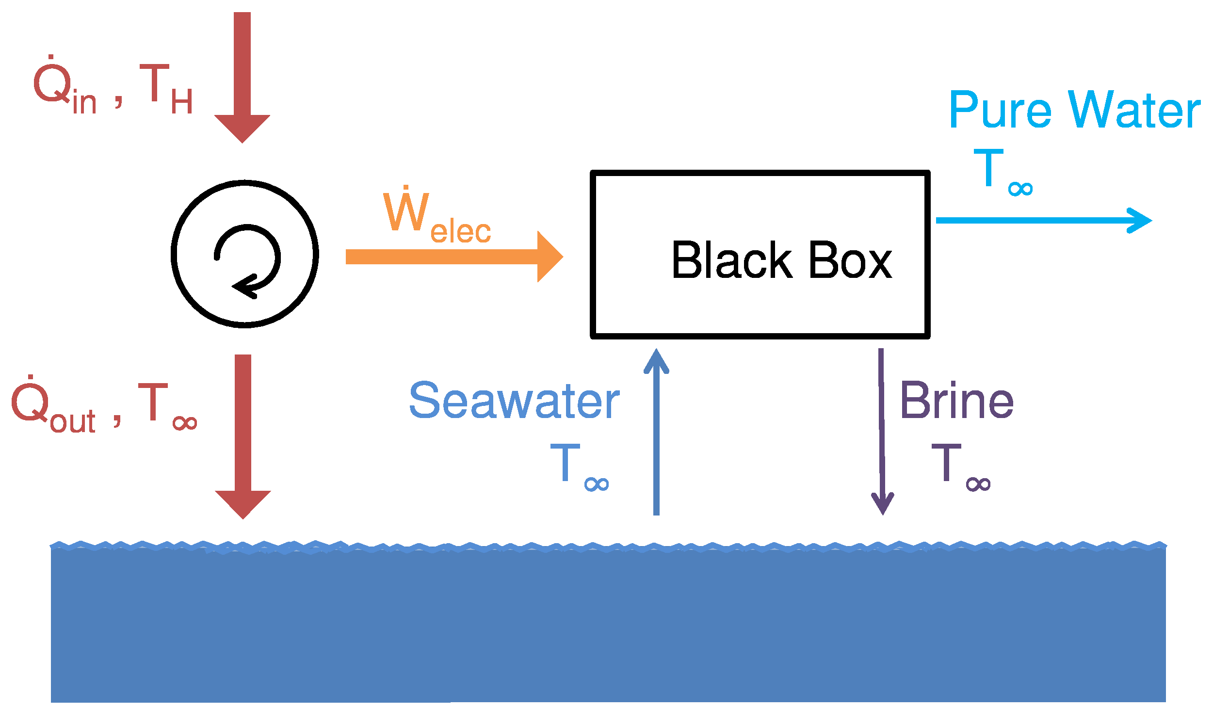 Figure 1 shows a schematic diagram of a simplified black-box desalination system with heat transfer occurring from a waste heat source at temperature,