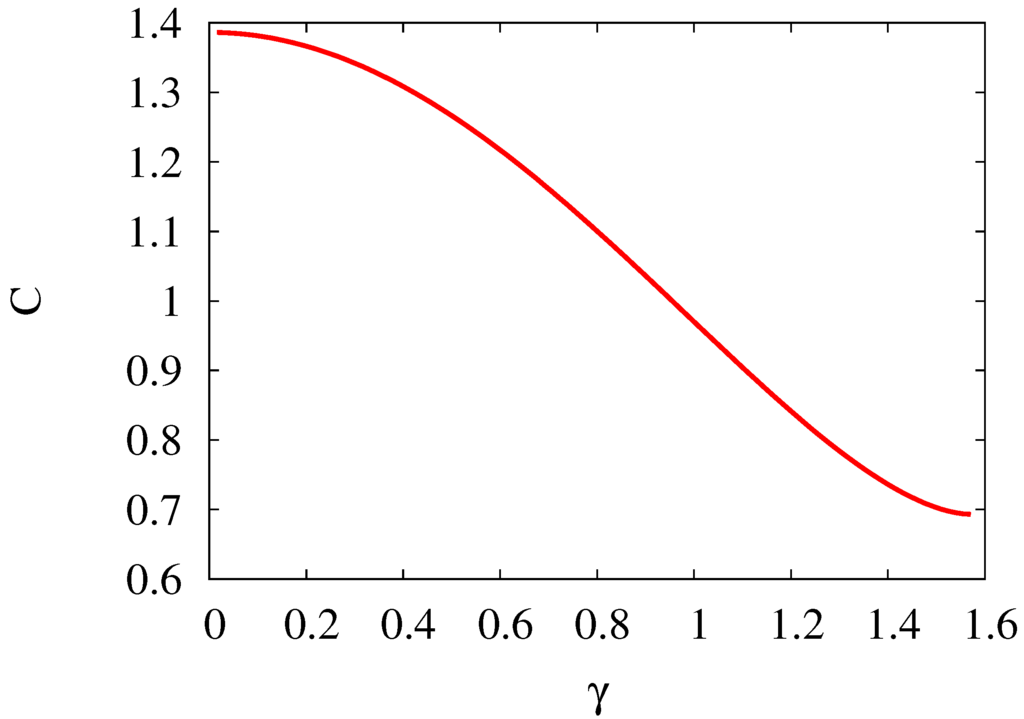 Initial (calculated at ) relative entropy of coherence Equation (40) as a function of γ.