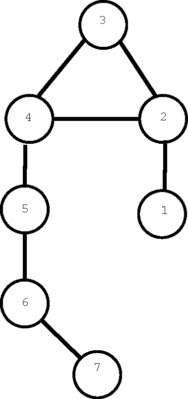 Graphs with H-entropy log(n) are more difficult to characterize. The following figure shows the smallest graph with maximum H-entropy. Adding a vertex and joining it to 7 produces a graph on eight vertices with H-entropy log(8). Continuing in this way (adding a new vertex and joining it to the one with the highest label) we can generate an infinite class of graphs with maximum H-entropy.
