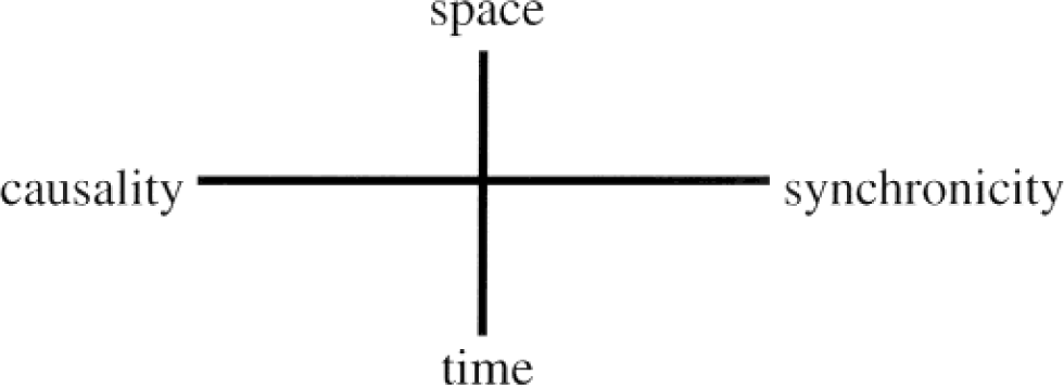 Diagram constructed by Carl Jung, later modified by Wolfgang Pauli, to suggest relationships based on synchronicity as an “acausal connecting principle”, existing alongside causal relationships [8].