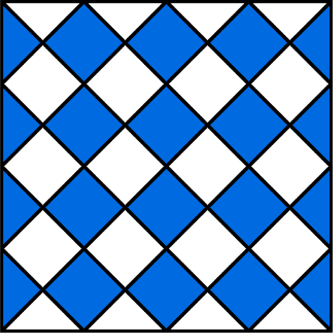 The spin lattice of an L × L planar code. The s-plaquettes are shown in blue and the p-plaquettes are shown in white. A spin-1/2 particle is situated at each vertex. In this example the linear size is L = 5. The linear size L is also the distance of the code.
