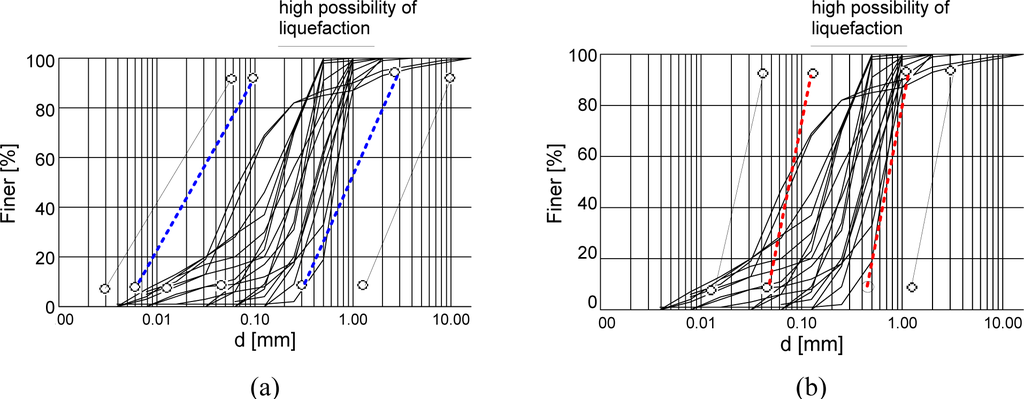 - Numata, A.; Mori, S. Limits in the gradation curves of liquefiable soils, Proceedings of the 3th World Conference on Earthquake Engineering, Vancouver, B.C., Canada, 1–6 August 2004.