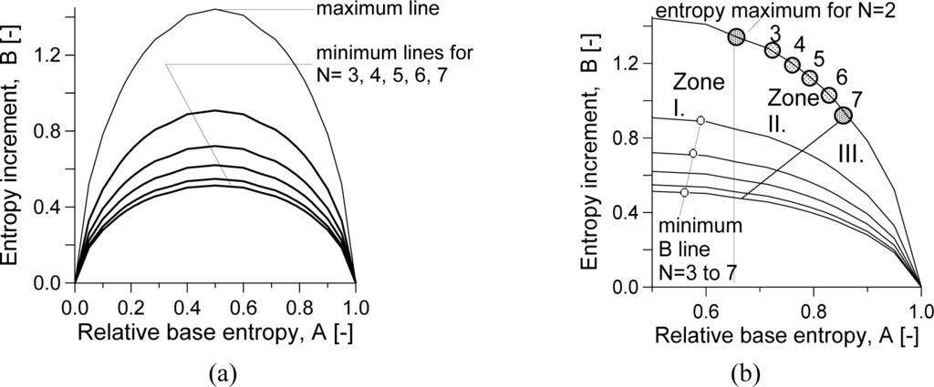 where So max and So min are the base entropies of the largest and the smallest fractions in the mixture, respectively. The normalized entropy increment B is defined as:
