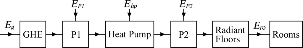 An exergy analysis of a GCHP system with radiant floors as terminals is performed based on test results. The following concluding remarks can be extracted from this study: