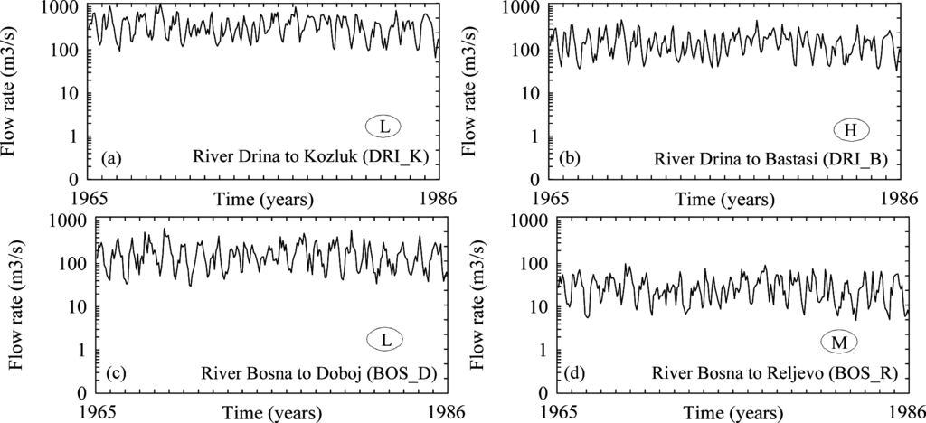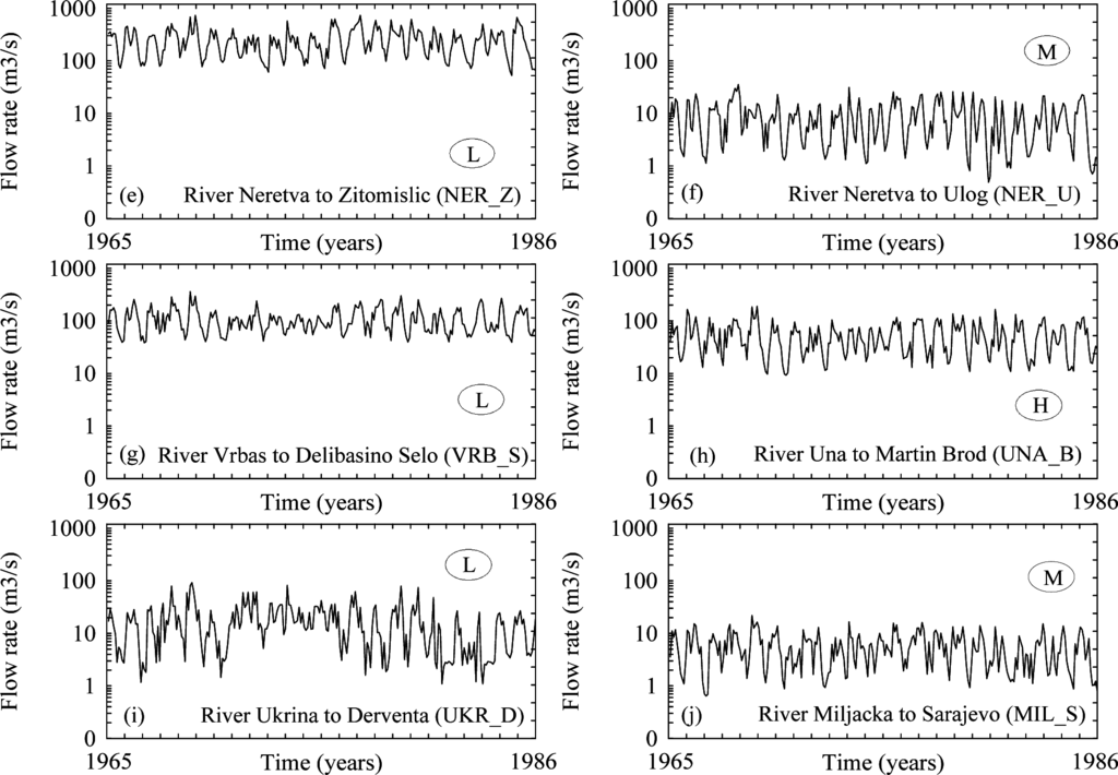 They are spread across the country and are representative for catchments in these regions. Datasets of monthly river flow rates for the period 1965–1986 were taken from the Annual Report of the Hydrometeorological Institute of Bosnia and Herzegovina, consisting of 252 data points in each time series.
