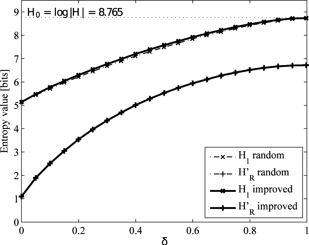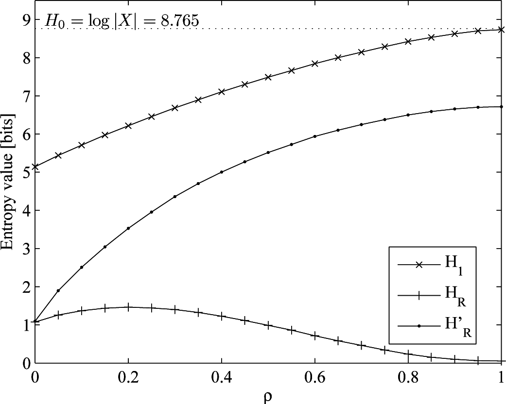 - A real mobility trace taken from the dataset provided by the Reality Mining Project [58]. We can only theoretically know H0 = 8.765 (drawn from the cardinality of the alphabet, i.e., the number of different symbols representing the locations visited by the user), since the underlying probability distribution is unknown. This means an increase both in the cardinality and the memory of the process, due to the long-range dependencies of human mobility.
