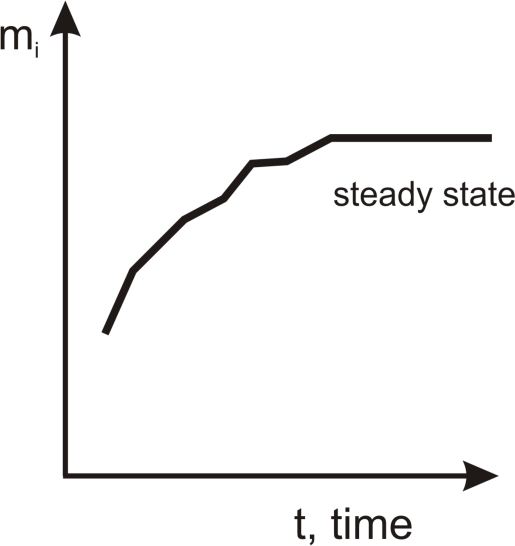 In an irreversible process, differentials of the function mi in an arbitrarily chosen element of volume are always positive. This is the reason why in the steady state, mi achieves its maximum values.