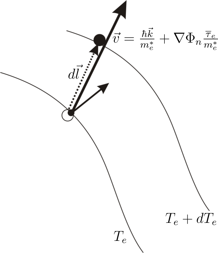 (total electron velocity with subtracted drift velocity caused by ∇Φn) at the point on the isotherm with temperature T in the time period equaling the mean relaxation time