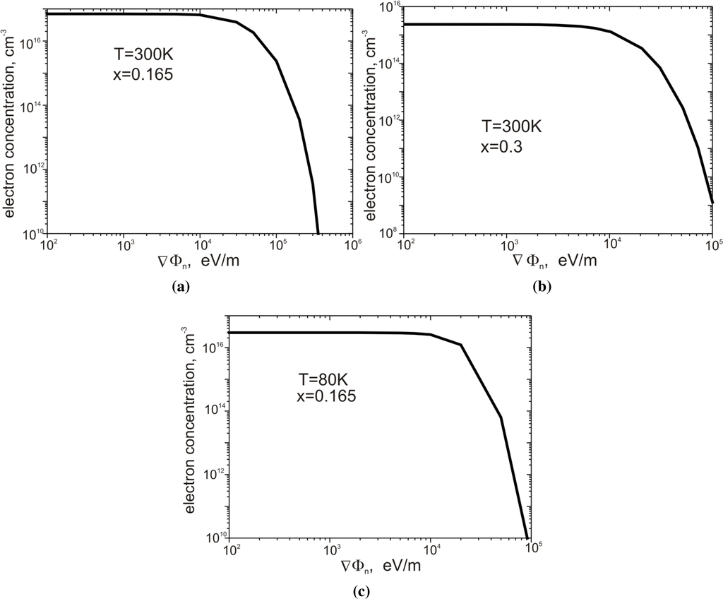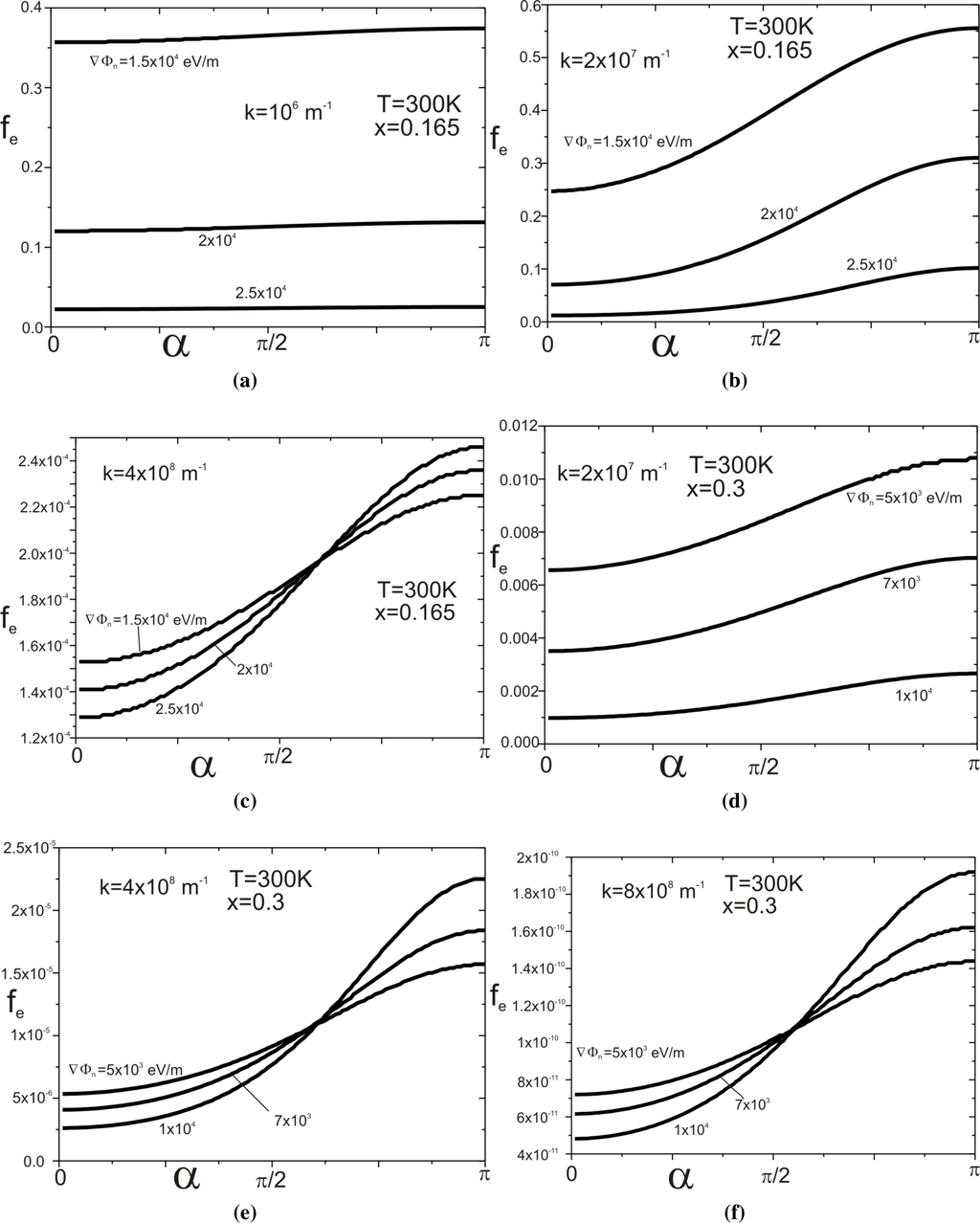 and the selected gradients ∇Φn (see Figure 5). Figure 4a–4c relates to the structure of the molar composition x = 0.165 and the temperature T = 300 K, and Figure 4d–4f relates to the structure with parameters x = 0.3 and T = 300 K.