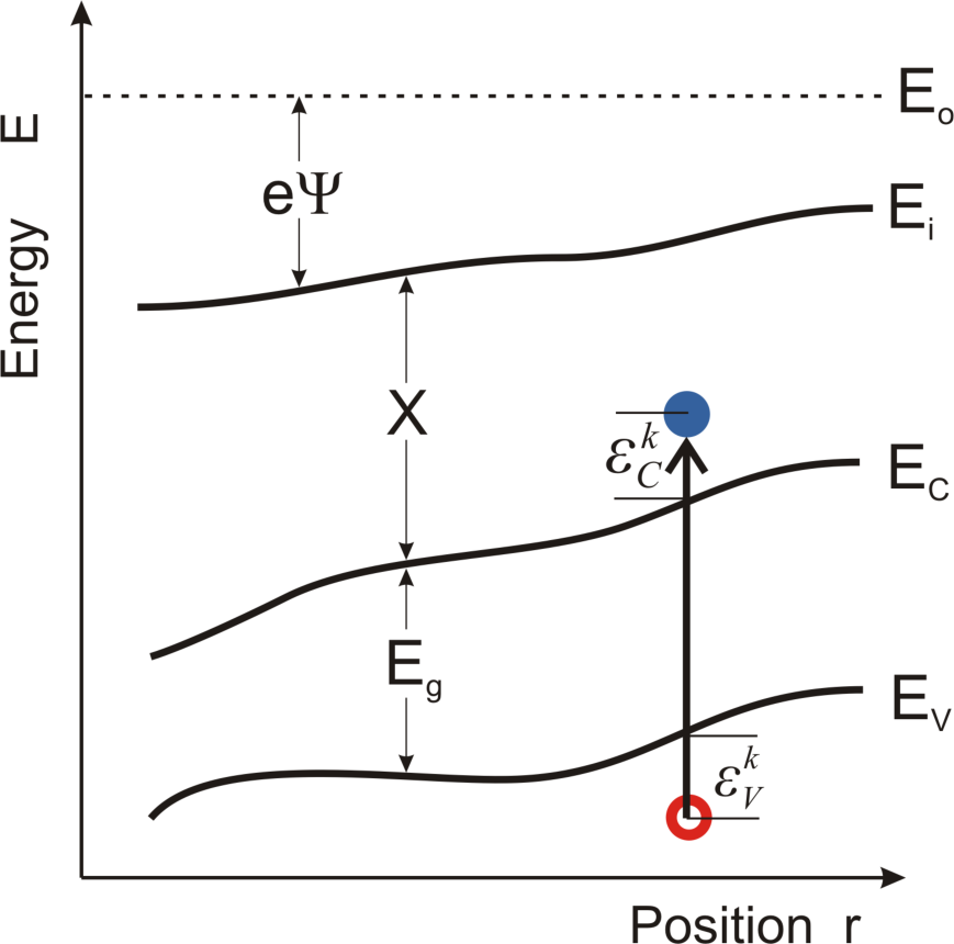 Here, Φn and Φp are the electrochemical potential for CB electrons and CV electrons, respectively. The electrochemical potential for holes is equal to –Φp.