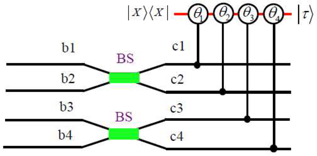 where the N = 2(|c0c3|2 + |c1c2|2). The success probability to obtain the state of Equation (27) is P1 = N.