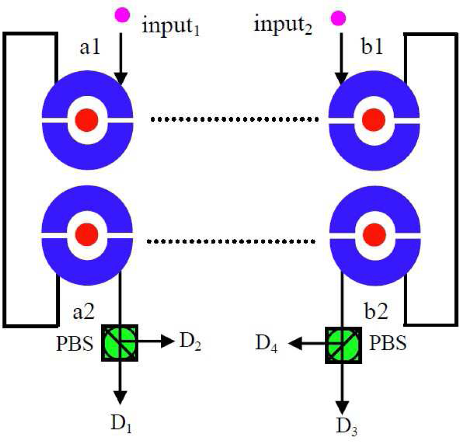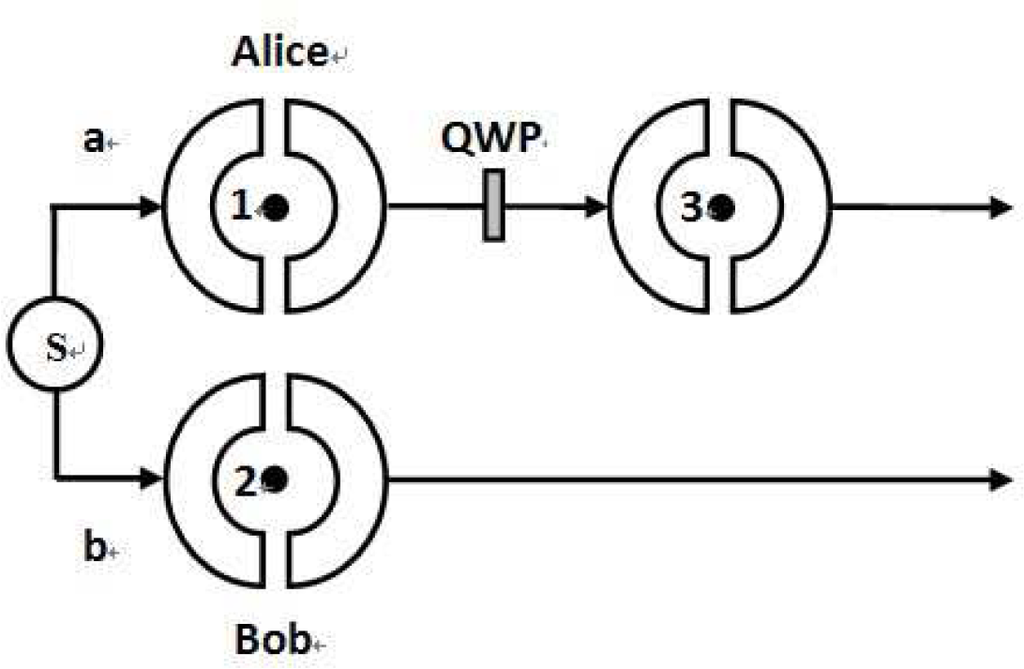 The first protocol is in linear optics, as shown in Figure 2. Two identical signal photon pairs are prepared in the special two-photon polarization-entangled pure states as: