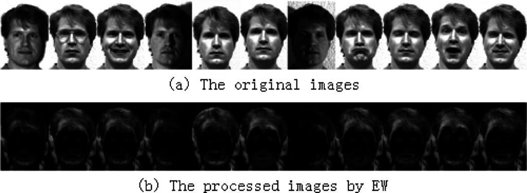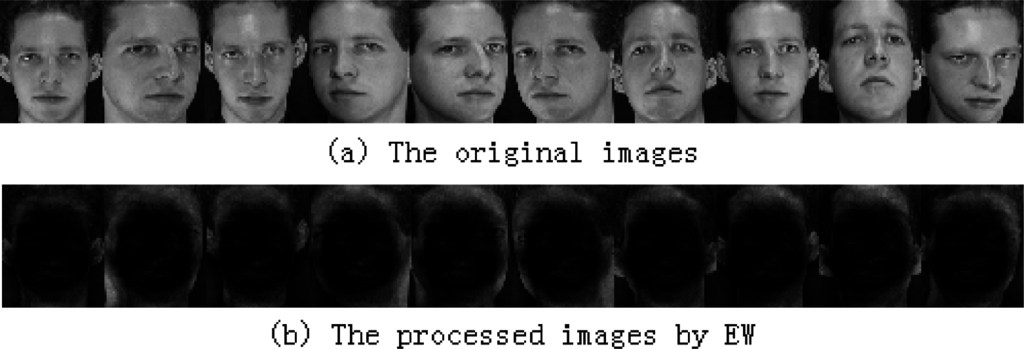 The comparison of the originally Yale images and the images processed by EW method. (a) the original Yale images; (b) the processed images by EW (