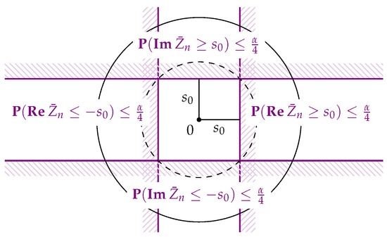 Rejecting if or , then, will happen with probability at most under the hypothesis . In case that we already rejected the hypothesis , i.e., if , ζ will not be rejected if and only if and which is then equivalent to (see Figure 3).