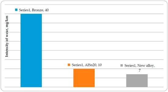 Intensities of wear of antifriction aluminum alloys and bronze.