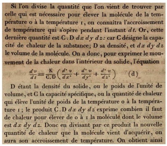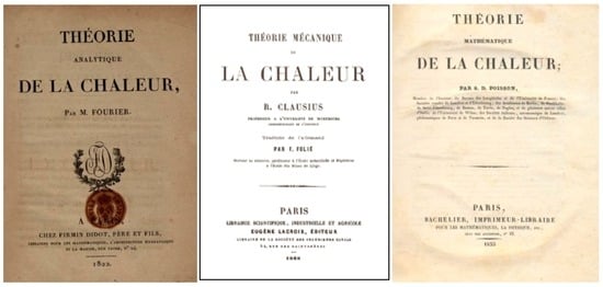 “Théorie analytique de la chaleur (analytic theory of heat)” by Jean Baptiste Joseph Fourier [], “théorie mécanique de la chaleur (mechanic theory of heat)” by François Clausius [] and “théorie mathématique de la chaleur (mathematic theory of heat)” by Siméon-Denis Poisson [].