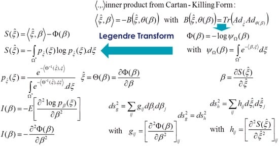 - Nencka, H.; Streater, R.F. Information Geometry for some Lie algebras. Infin. Dimens. Anal. Quantum Probab. Relat. Top. 1999, 2, 441–460. [Google Scholar] [CrossRef]