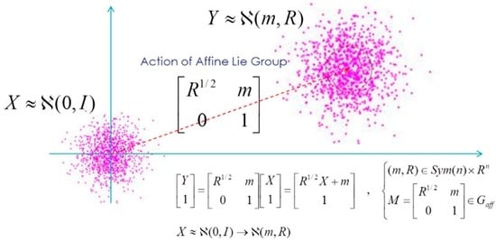- For the case of multivariate Gaussian densities, we have considered a sub-group of affine group, that we defined by a (n + 1) × (n + 1) embedding in matrix Lie group , and that acts for multivariate Gaussian laws by: