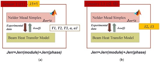 The minimization of the cost function has been performed sequentially using the Nelder–Mead simplex method [20] implemented via the Matlab function fminsearch [21], see also Figure 2.