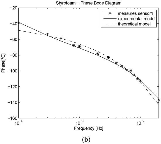 Metal beam filled with Styrofoam. Theoretical and experimental model comparison in the frequency domain. (a) Module diagram; (b) Phase diagram.