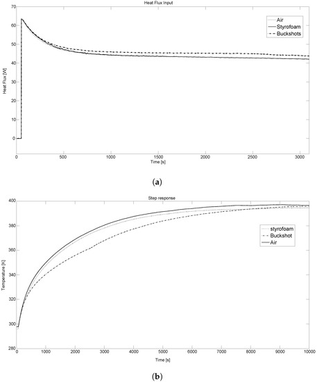 Step response analysis at (a) Heat flux input; (b) Measured output temperature.