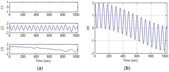 Then, the recovered signal can be obtained as Equation (13) by estimating the peak in the frequency of pseudo Wigner–Ville distribution of