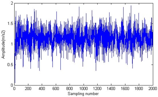 Figure 13 is the output of vibration signal from gearbox and the sampling frequency is 8000 Hz. Similar to